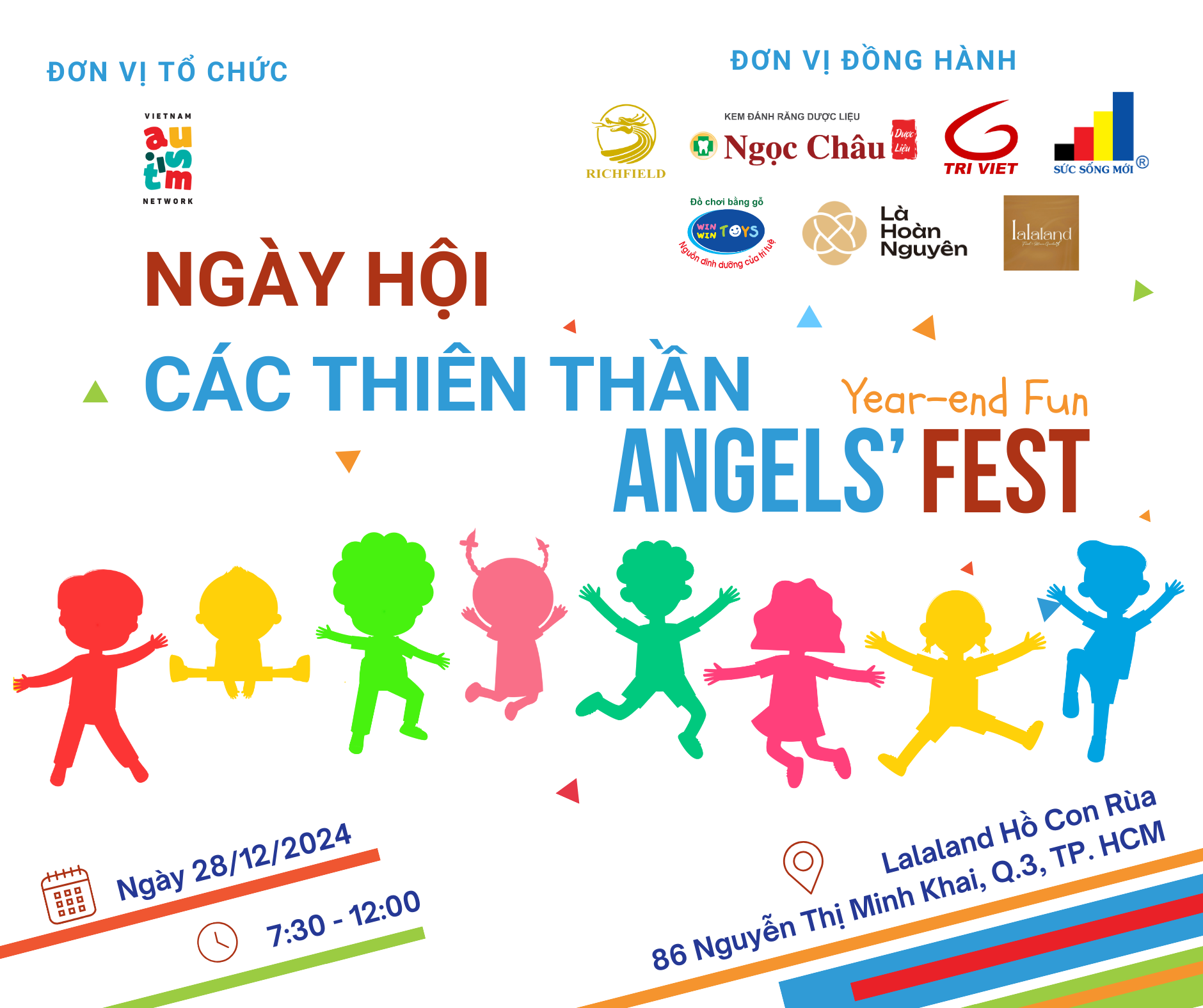 Sự kiện Ngày hội các thiên thần, một chương trình ý nghĩa dành cho các trẻ em tự kỷ tại TP.HCM và các tỉnh lân cận. Chương trình dự kiến được tổ chức từ 7:00 đến 12:00 ngày 28/12/2024 tại Lalaland Hồ Con Rùa, TP.HCM.