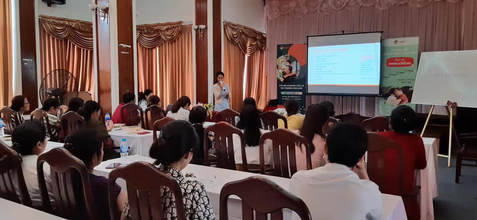Tiền Giang ngày hôm nay 15/9/2019, tập huấn VAN-A365 với sự tham gia của 70 gia đình. Chuyên gia: cô Lê Thị Phương Hoa (cử nhân tâm lý ứng dụng, chứng chỉ ABA).