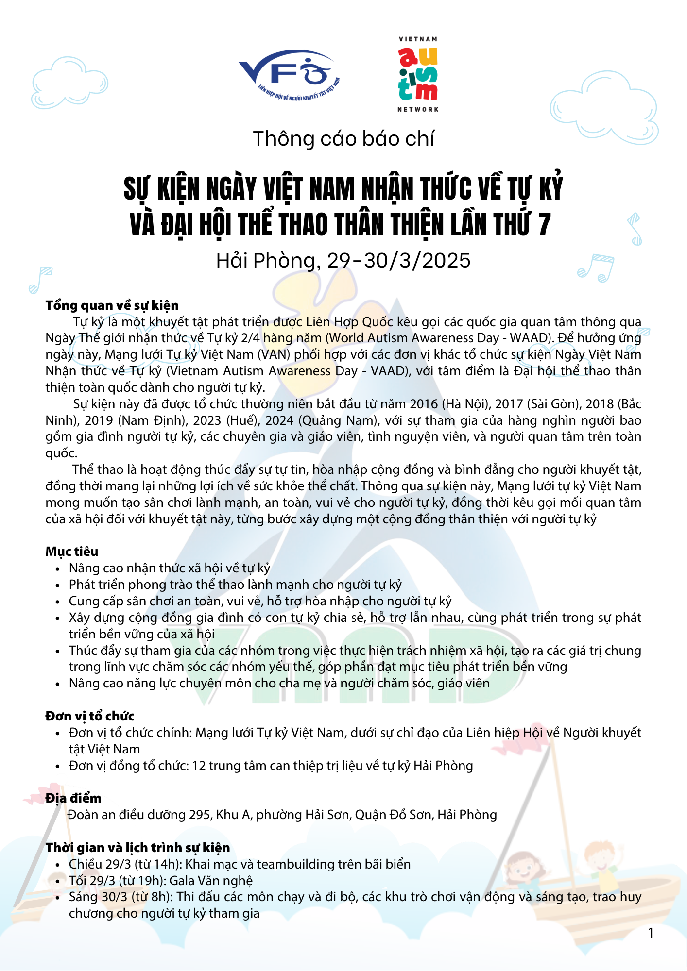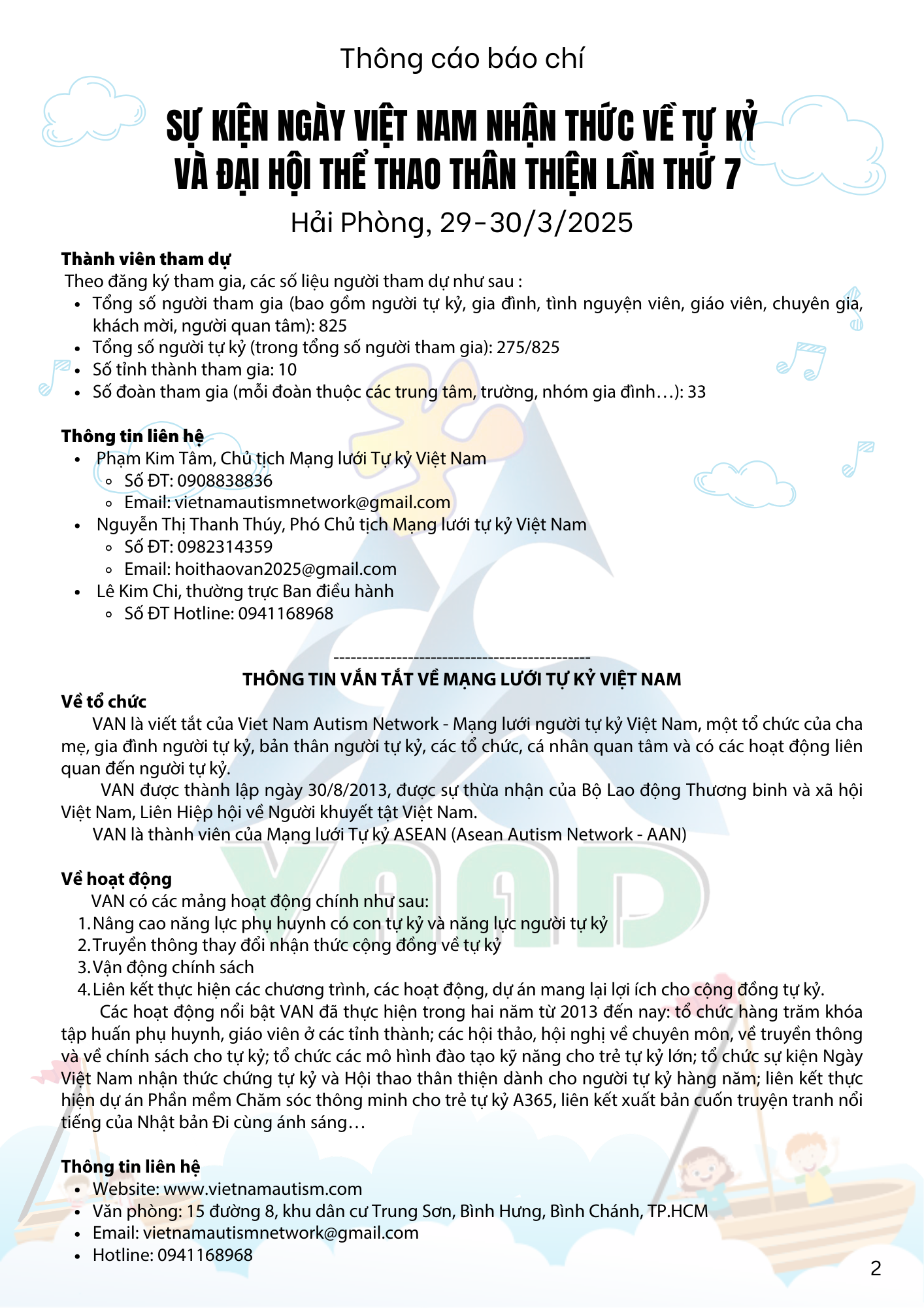 Thông cáo báo chí Sự kiện Ngày Việt Nam nhận thức về Tự kỷ và Đại hội thể thao thân thiện lần thứ 7 27/03/2025 Mạng lưới Tự kỷ Việt Nam 0 Nhận xét